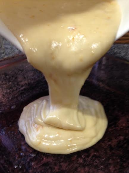 - Pour the batter into your greased and prepared pan, letting it sit for a few moments until the top is even and level.